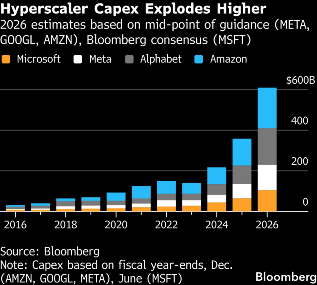 I don’t see this downdraft as the market turning bearish on AI. I see it as the market finally confronting the economic reality of AI at scale. The shift began when hyperscalers showed just how large and persistent AI capex will be. Alphabet’s ~$175–185B 2026 capex guide wasn’t shocking because of the number, but because it signaled AI is now the core capital cycle, pressuring free cash flow and ROIC.
