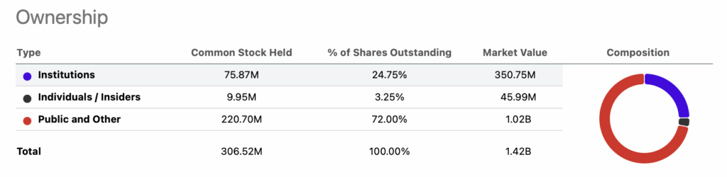OWNERSHIP & LIQUIDITY: